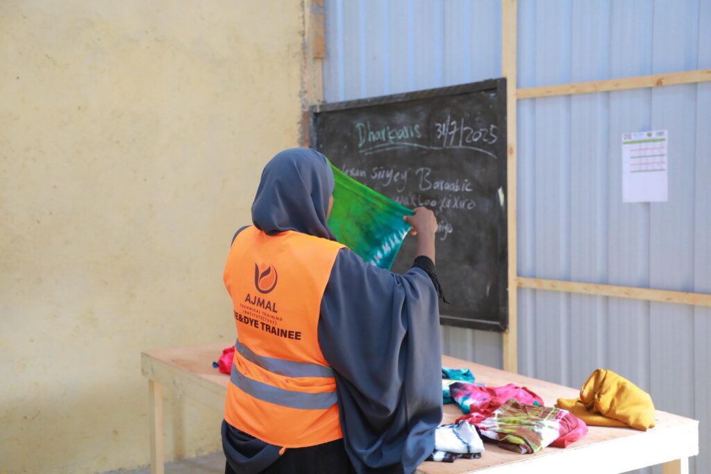 Maryan Mohamed Ibrahim, a 26-year-old woman from the host community in Baidoa, has embarked on a transformative journey by enrolling in the tie-dye course at Ajmal TVET Center. Faced with prolonged unemployment and limitedd opportunities, her decision to join the training marked a turning point in her life. It was at Ajmal that she found the courage to pursue new skills and envision a brighter future.